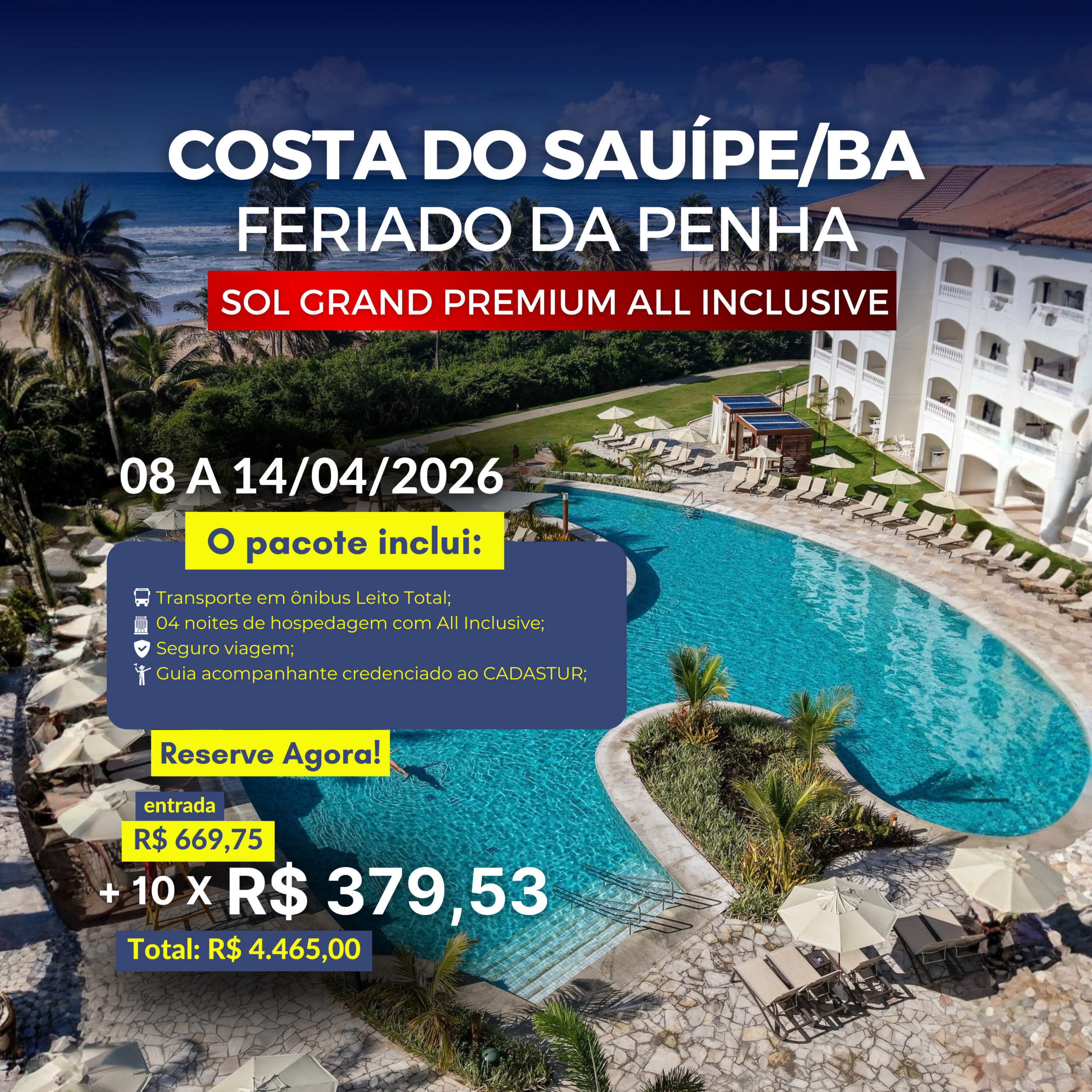 | Costa do Sauípe – Sol Grand Premium | All Inclusive | Luxo | 7.790 | 4.465 | 4.390 | 1.890 |