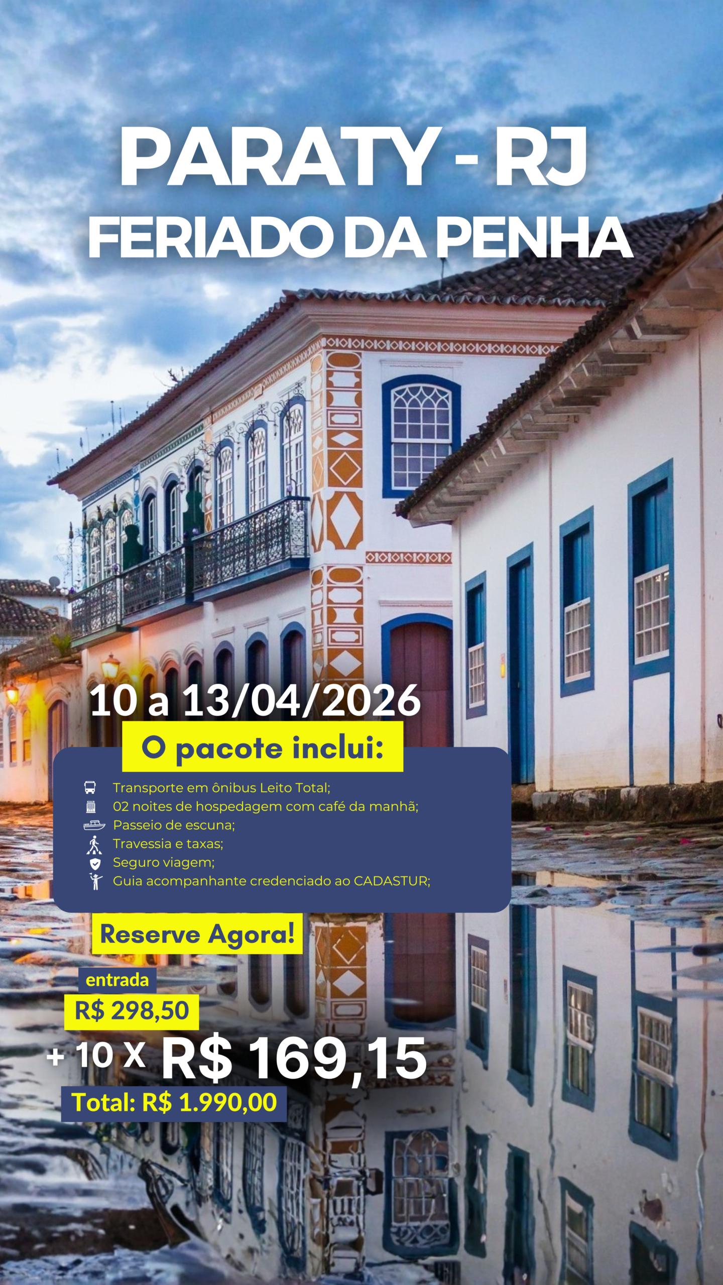 5º DIA (TERÇA – 14/ABR) – PARATY/RJ
